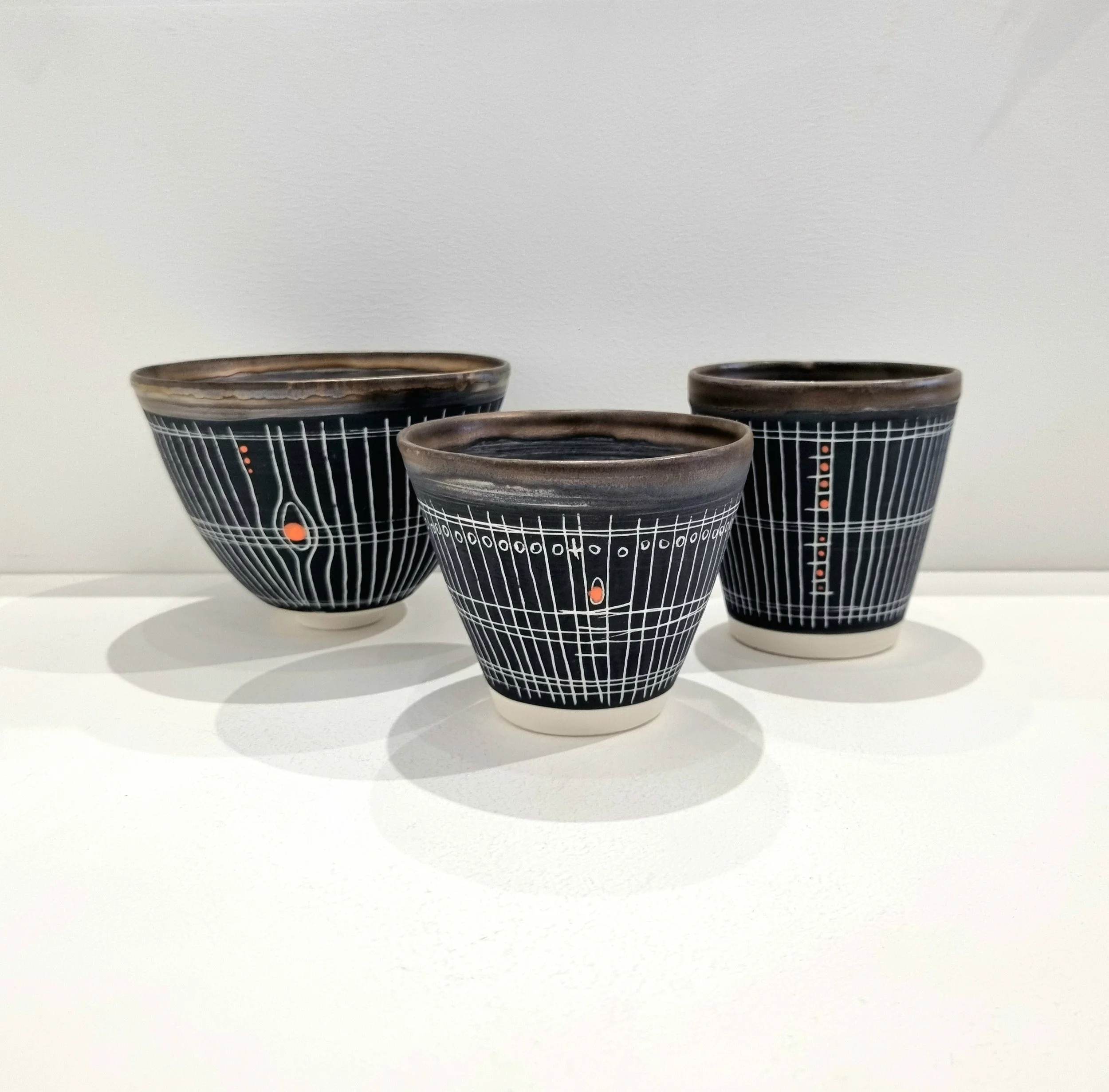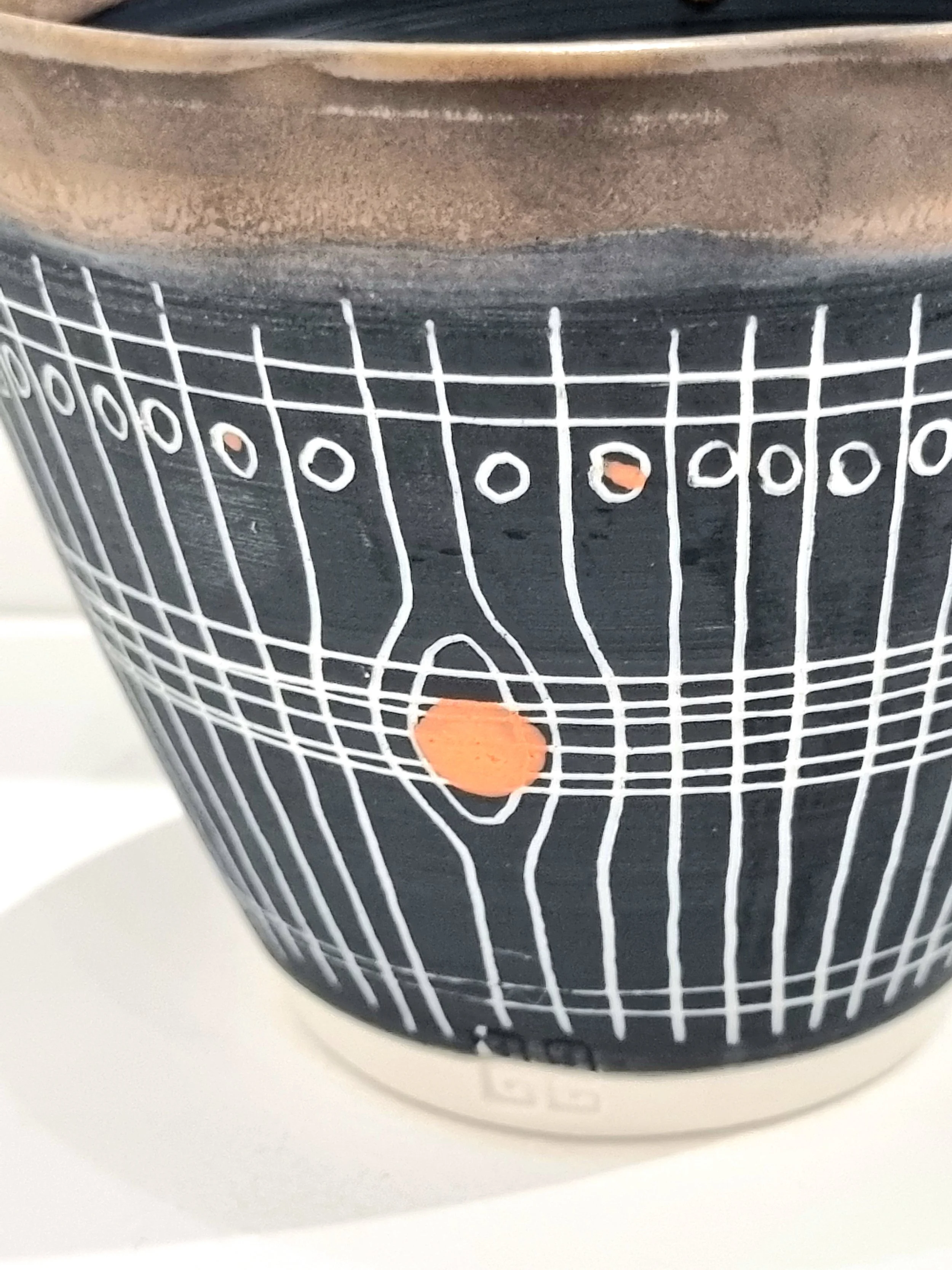 White Porcelain with Sgraffito Detailing and Metallic Bronze Oxides